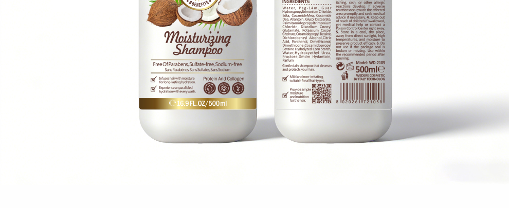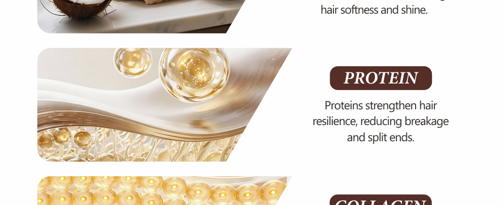 COCONUT AND PROTEIN AND COLLAGENCoconut shampoo infuses abundant moisture into the hair,providing deep hydration and nourishment from the rootsto the tips without making the hair feel heavy or sticky.